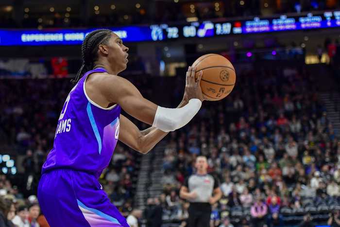本场比赛,爵士前锋科迪·威廉姆斯手感不佳,打了37分钟12投4中,三分5中1、罚球4中4拿到13分11篮板2助攻2抢断,正负值-21最低。